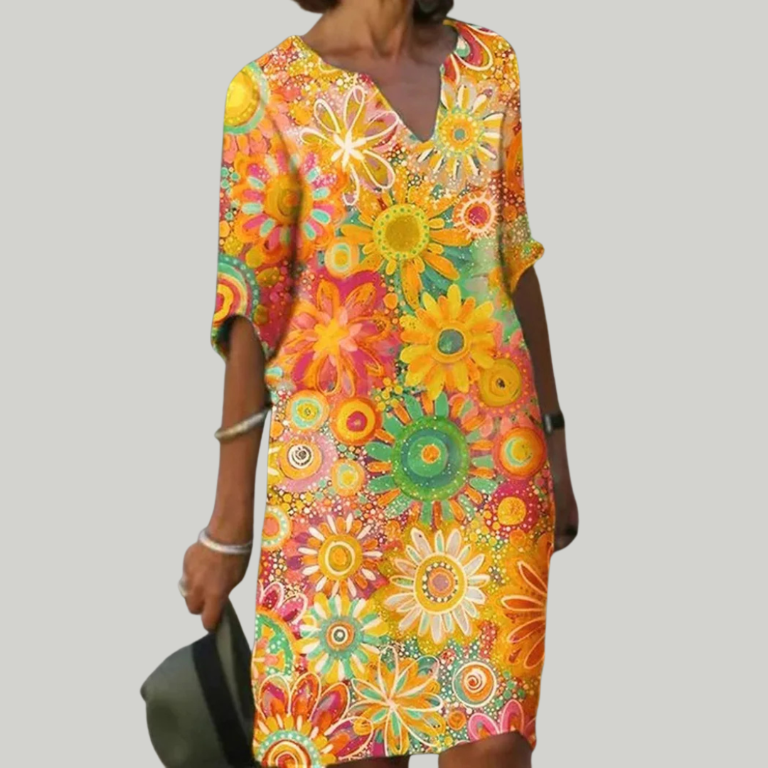 Women’s V-Neck Summer Midi Dress | 3/4 Sleeve
