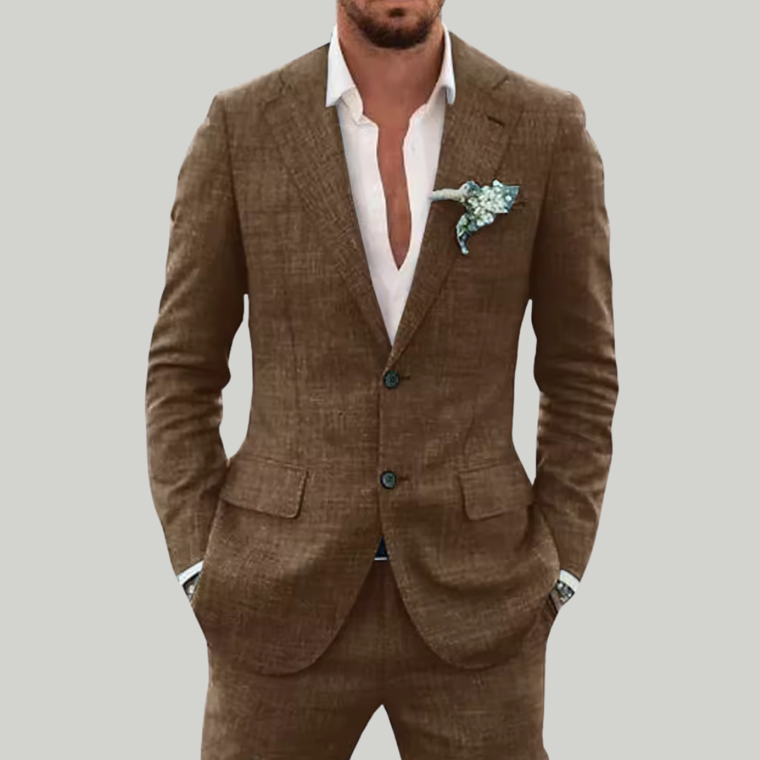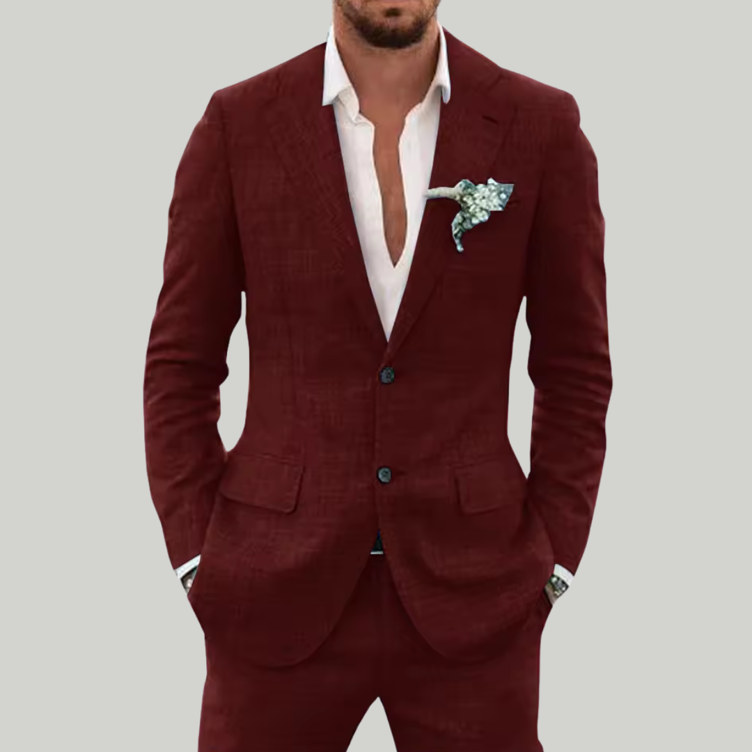 Step into any warm-weather event with confidence in this summer two-piece suit. Designed for weddings, garden parties, or daytime gatherings, it combines structured tailoring with breathable fabrics to keep you looking polished while staying at ease. Its modern cut ensures a refined appearance without restricting movement.