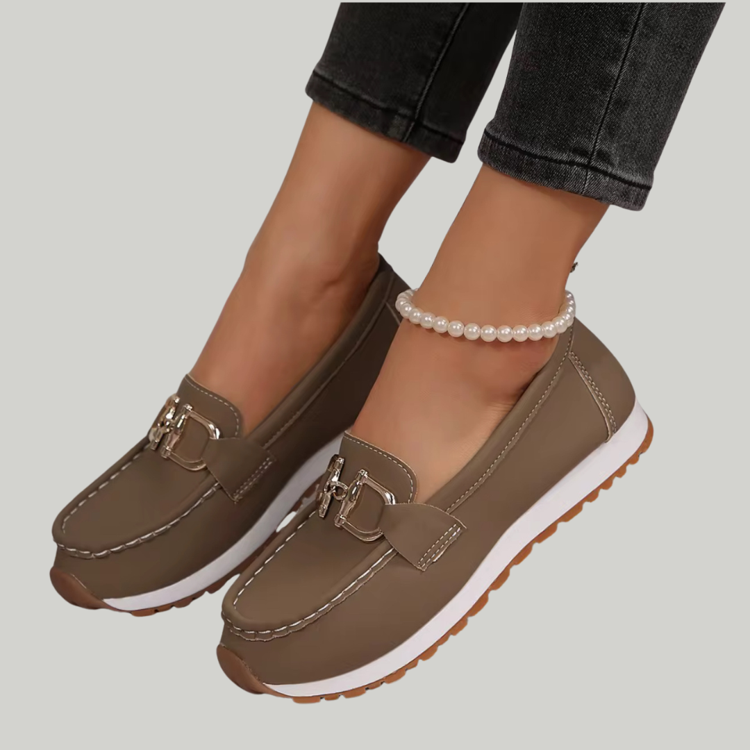 These women’s loafers are designed with a flat wedge that supports natural movement and a simple buckle accent for a clean, structured look. The slip-on style and breathable interior make them suitable for everyday use, whether you’re walking around the city, running errands, or at work.