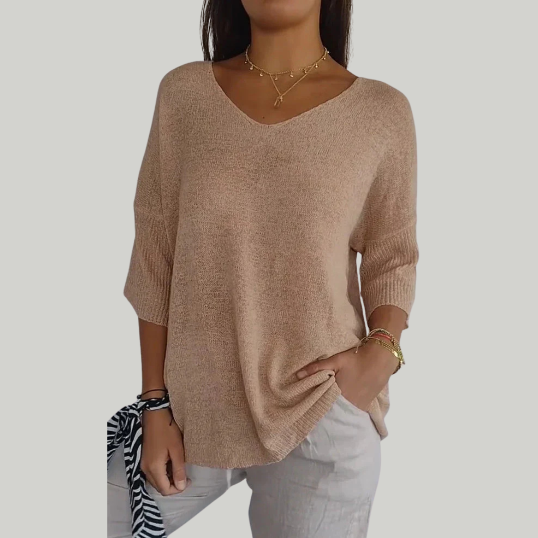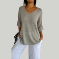 Women’s V-Neck Oversize Knit Top | 3/4 Sleeve