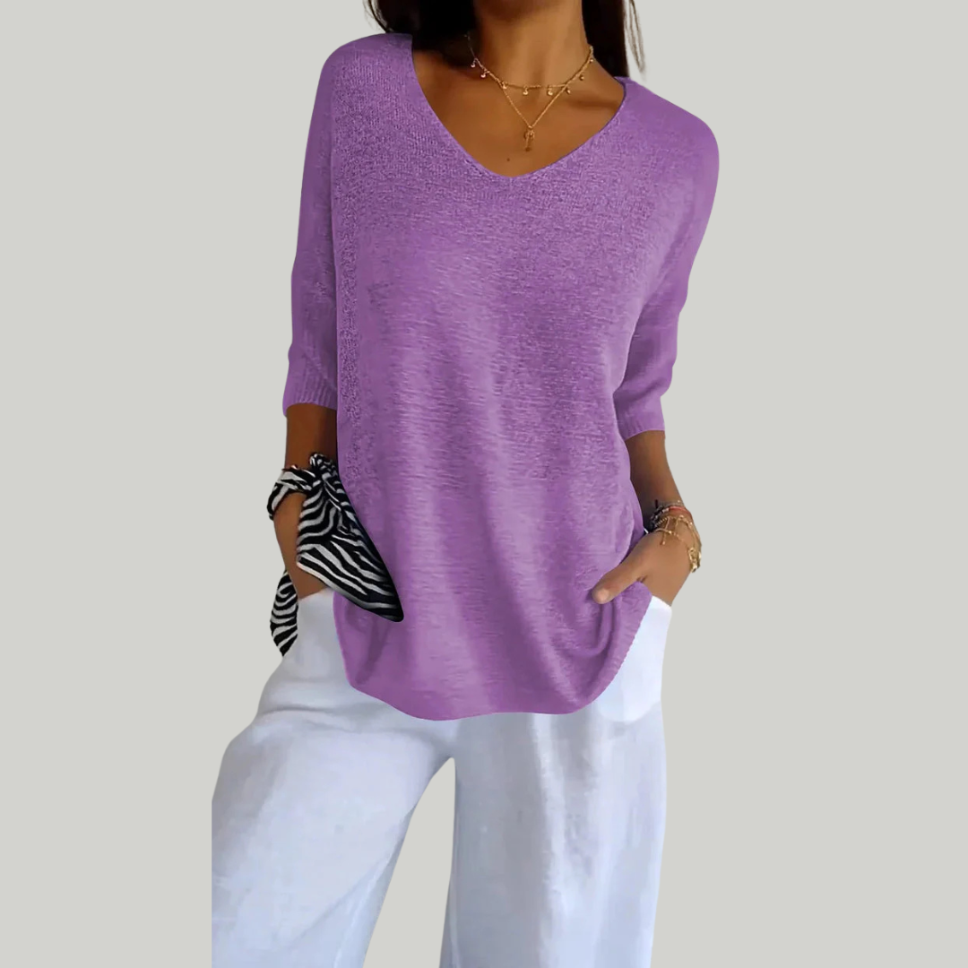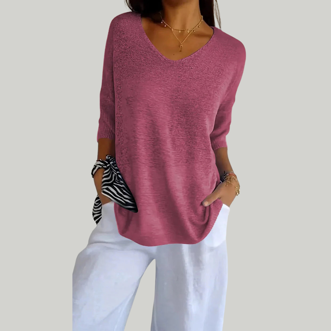 Why choose The Women’s V-Neck Oversize Knit Top | 3/4 Sleeve?