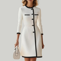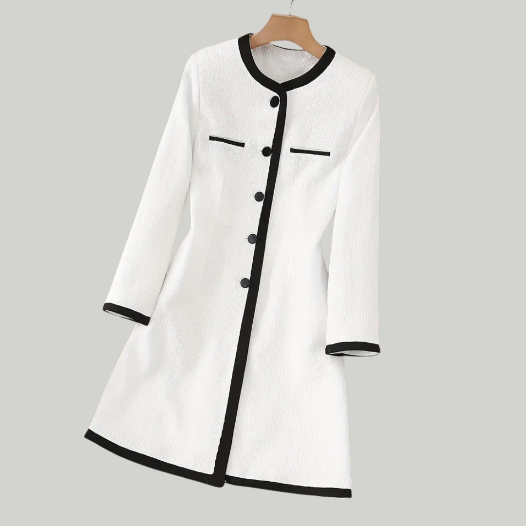 Some pieces are designed to look understated yet carry a distinct detail. The Women’s White Button Blazer Dress | Mini features a clean round neckline, a straight silhouette, and a contrasting hem that frames the look. Its above-the-knee length offers styling flexibility, whether worn on its own or layered with tailored outerwear.