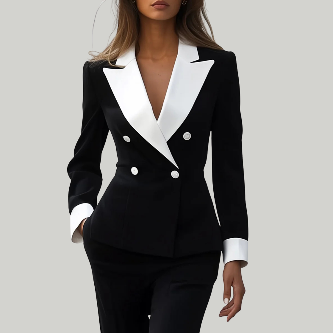 Confidence in Fit – The tailored blazer and structured pants create a defined outline, addressing the challenge of finding sets that flatter across different body types.