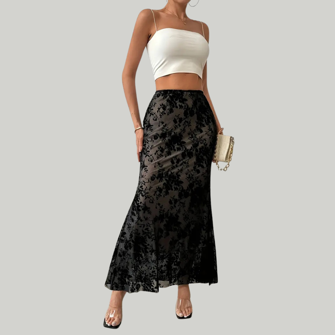 Finding a skirt that feels practical, looks appealing, and works for both casual and evening plans can be challenging. The Women's Black Floral Party Skirt | High-Waisted solves these issues with a waist-enhancing fit and flowing shape that moves easily while maintaining a polished appearance.
