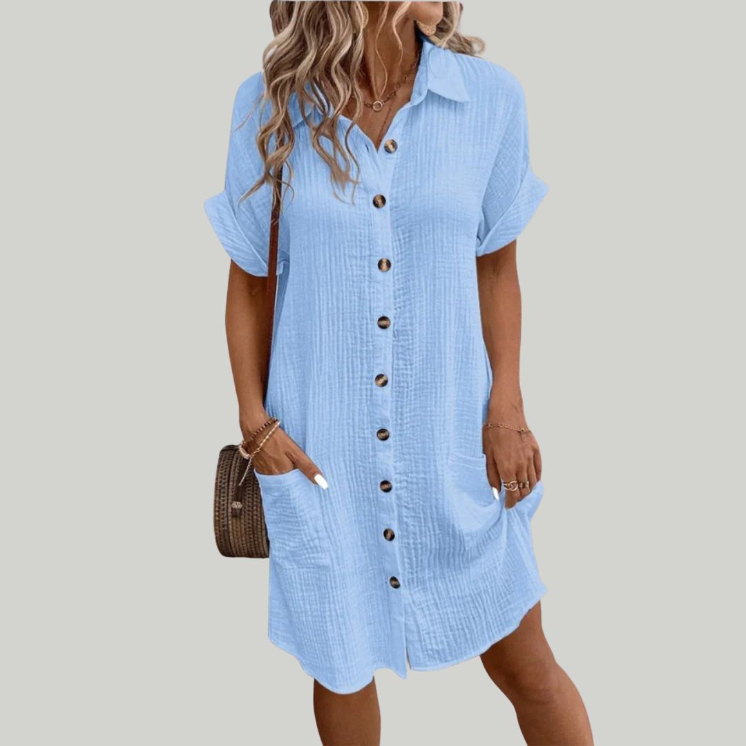 Redefine your wardrobe with the Women’s Button-Down Shirt Dress | Midi, designed to adapt to your day effortlessly. From work hours to weekend plans, this dress keeps you looking polished while letting you move freely. Its midi length and structured waist create a flattering shape, and the flowing design allows natural movement without restriction.