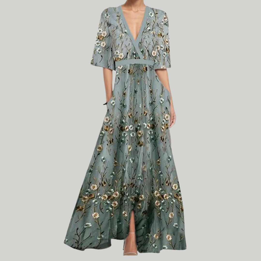 All-event ready – From weddings to dinners, its floral design and maxi length transition easily between formal and casual occasions.