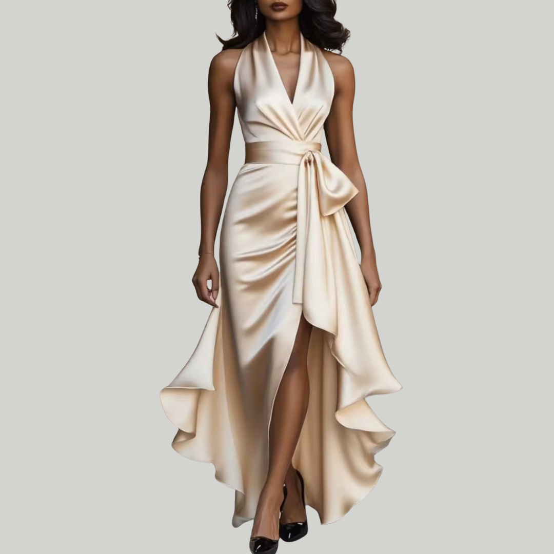 Finding a gown that looks refined while allowing ease of movement for special occasions can be challenging. The Women's Stunning Wedding Guest Dress | Maxi is designed to solve these issues, combining a flowing skirt, halter neckline, and fitted waist that work together to create a flattering and practical choice for weddings, parties, or evening gatherings.