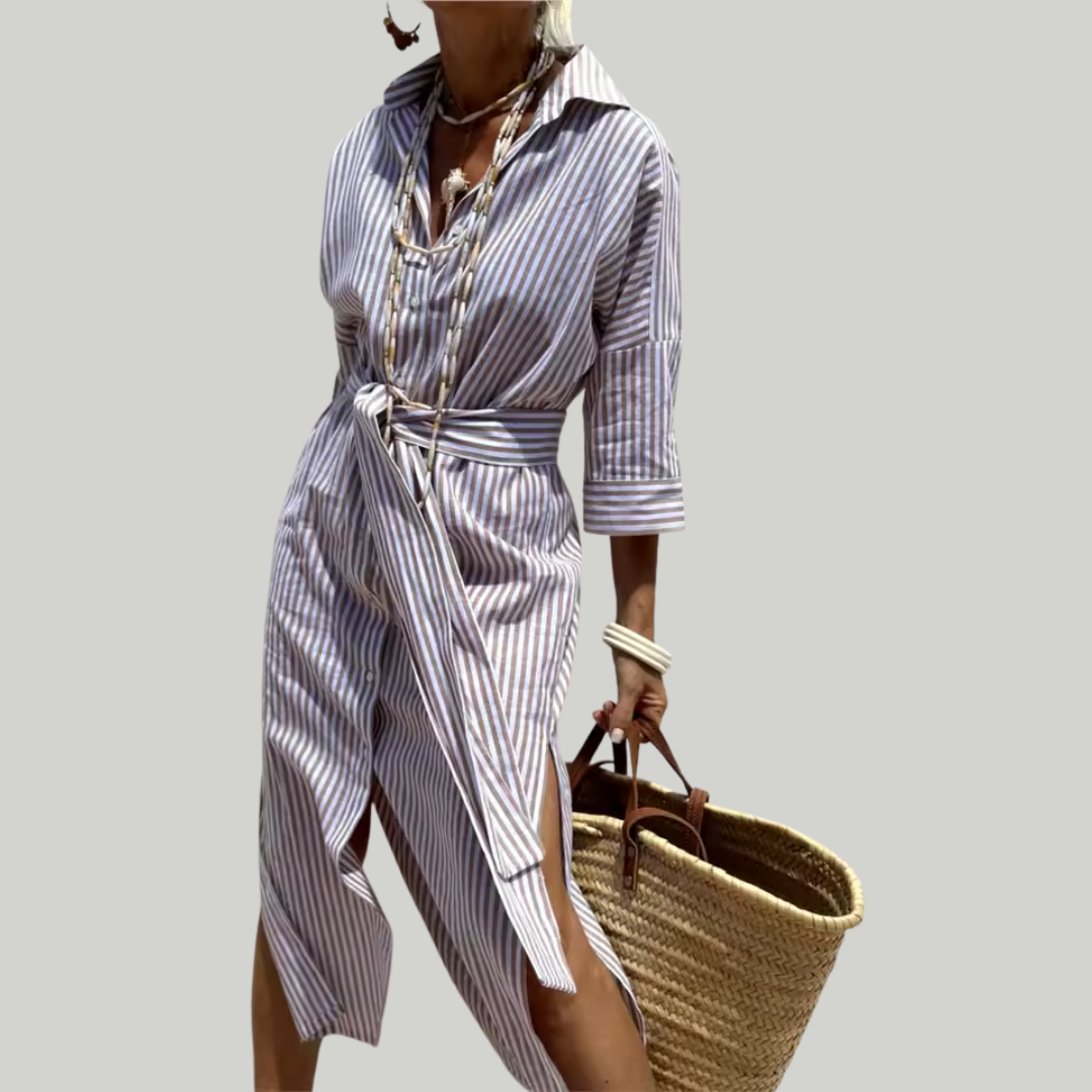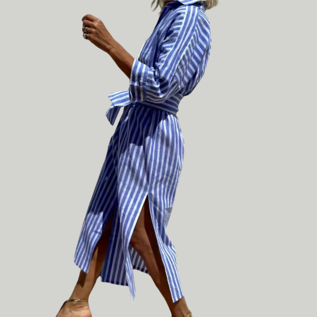 Flattering for All Figures – Vertical stripes and maxi length help create a balanced and graceful silhouette.