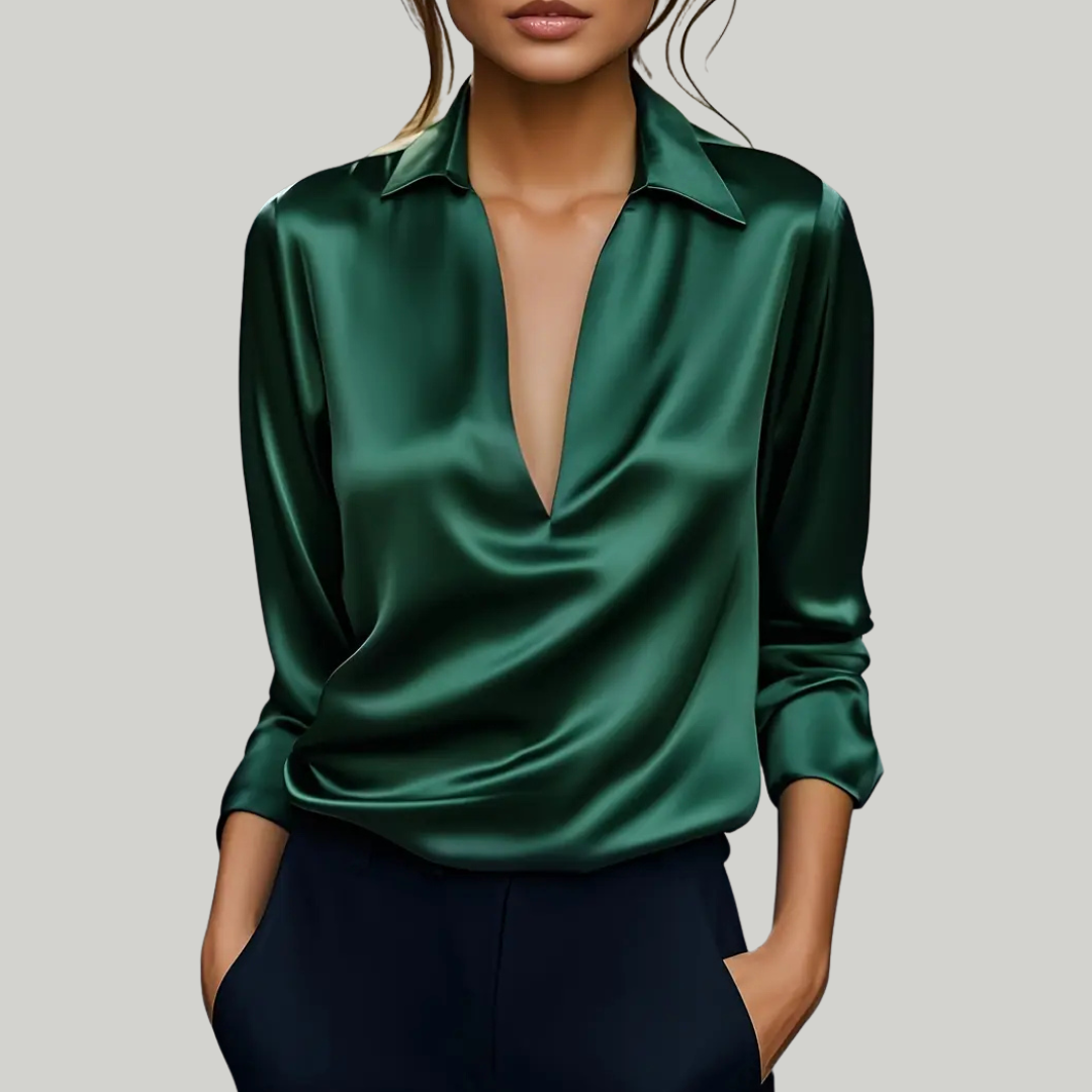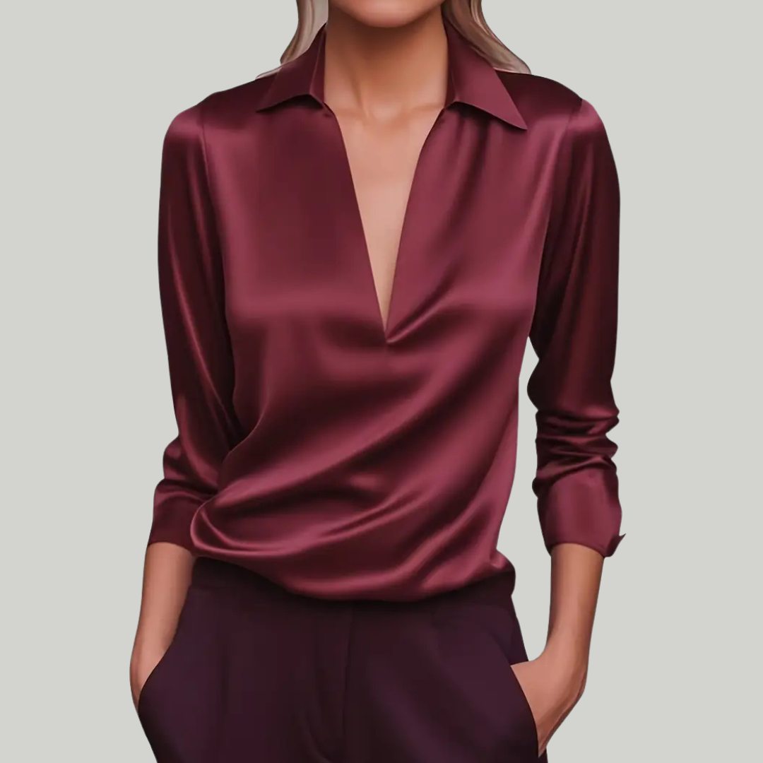 Women's Summer V-Neck Blouse | Long Sleeve